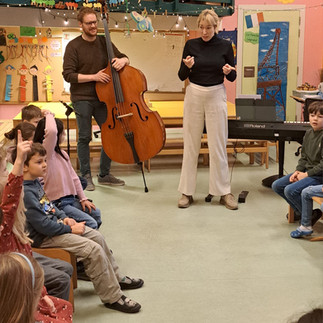 Die Schmetterlinge hatten diese Woche Besuch von Charlies Eltern. Gemeinsam haben sie Instrumente kennengelernt, miteinander gesungen und durften sogar auf dem Kontrabass und dem Klavier spielen.