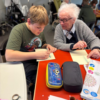 Und dann ganz spontan ließen es sich die Mittelstufengenerationsbrückler nicht nehmen, ihr wunderschönes Nikolauslied in französischer Sprache vorzutragen. Dies hatte Mme Marie, unsere Native-speakerin, für sie umgedichtet nach der Melodie von "La vie en rose". Beim Refrain setzten die Seniorinnen und Senioren kräftig mit ein.
