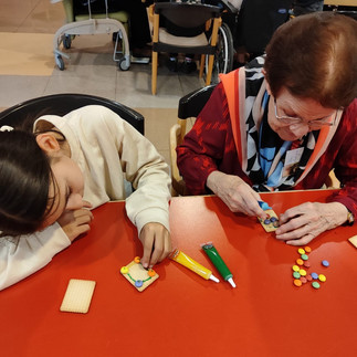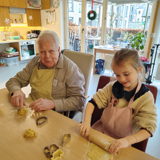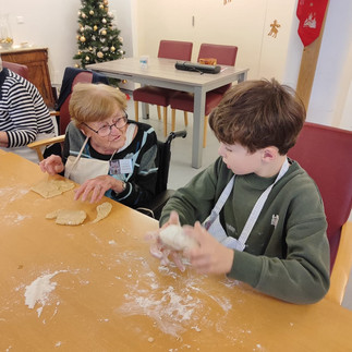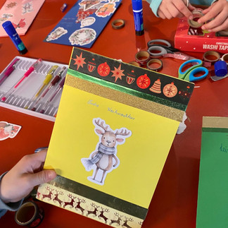 Am 5. und 12. Dezember wurden ganz kreativ und ohne Vorlage Weihnachtskarten gebastelt, Plätzchen gebacken und mit bunten Smarties und Lebensmittelfarbe verziert.